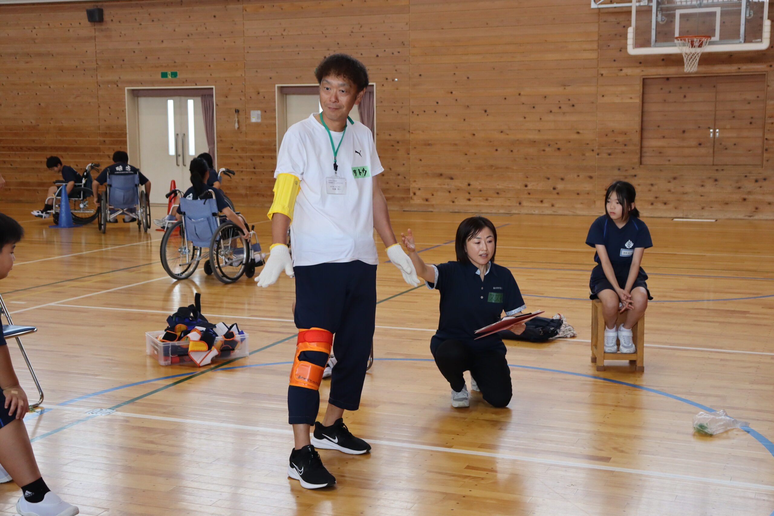 福祉の授業に参加しました。 2025/10/01 令和7年9月25日(木) 桑折町社協からの協力依頼を受けて、小学校の福祉の授業に参加いたしました。 福祉に関心を持ってもらえると最高ですね。 高齢者体験です。膝、肘にプロテクターを装着、軍手を両手にはめ、動きや感覚が不自由な感じを実体験してもらいました。小学生たちはプロテクターや軍手に四苦八苦していましたね。 「動きにくかった。」や「大変だ」と口々に話してくれました。 « 前のページ 次のページ »
