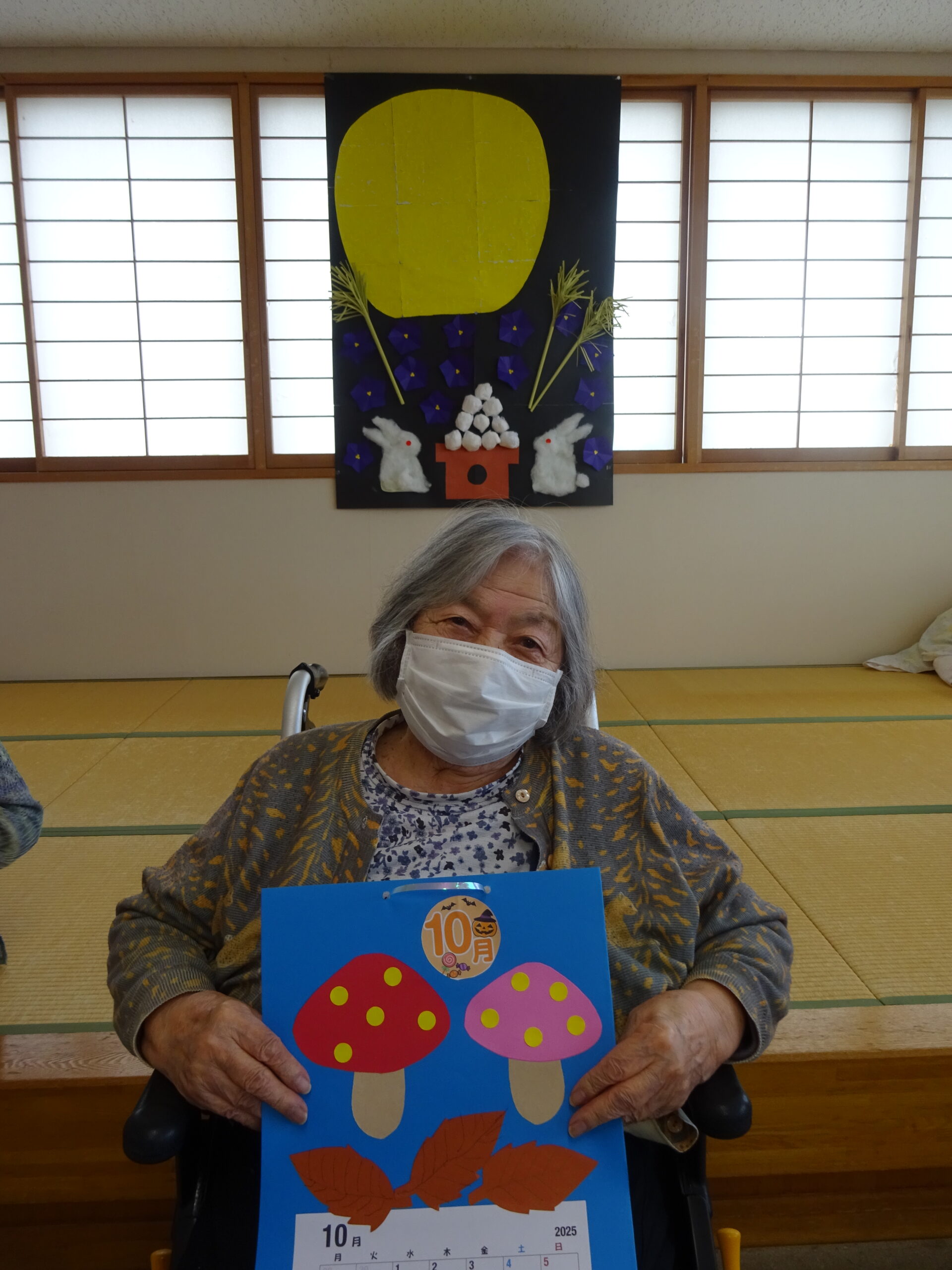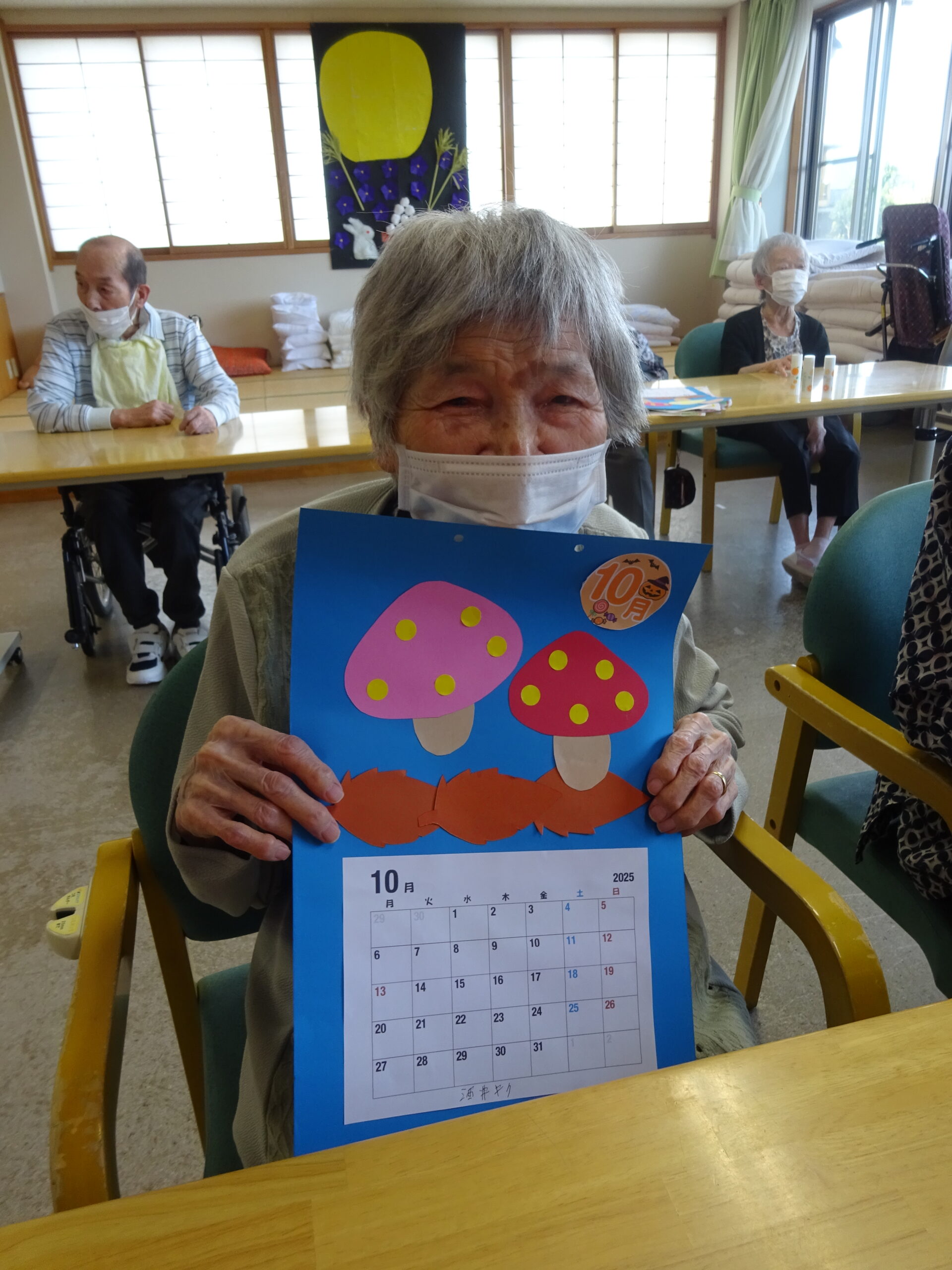 デイサービス カレンダー作成 2025/10/11 9月の終わり、10月のカレンダー作成を行いました。秋らしく、可愛いキノコにしました。 「可愛く出来た!!」「家のどこに飾ろうかなぁ」とても喜んでいました。10月も3分の1が過ぎました。元気に活動します! « 前のページ