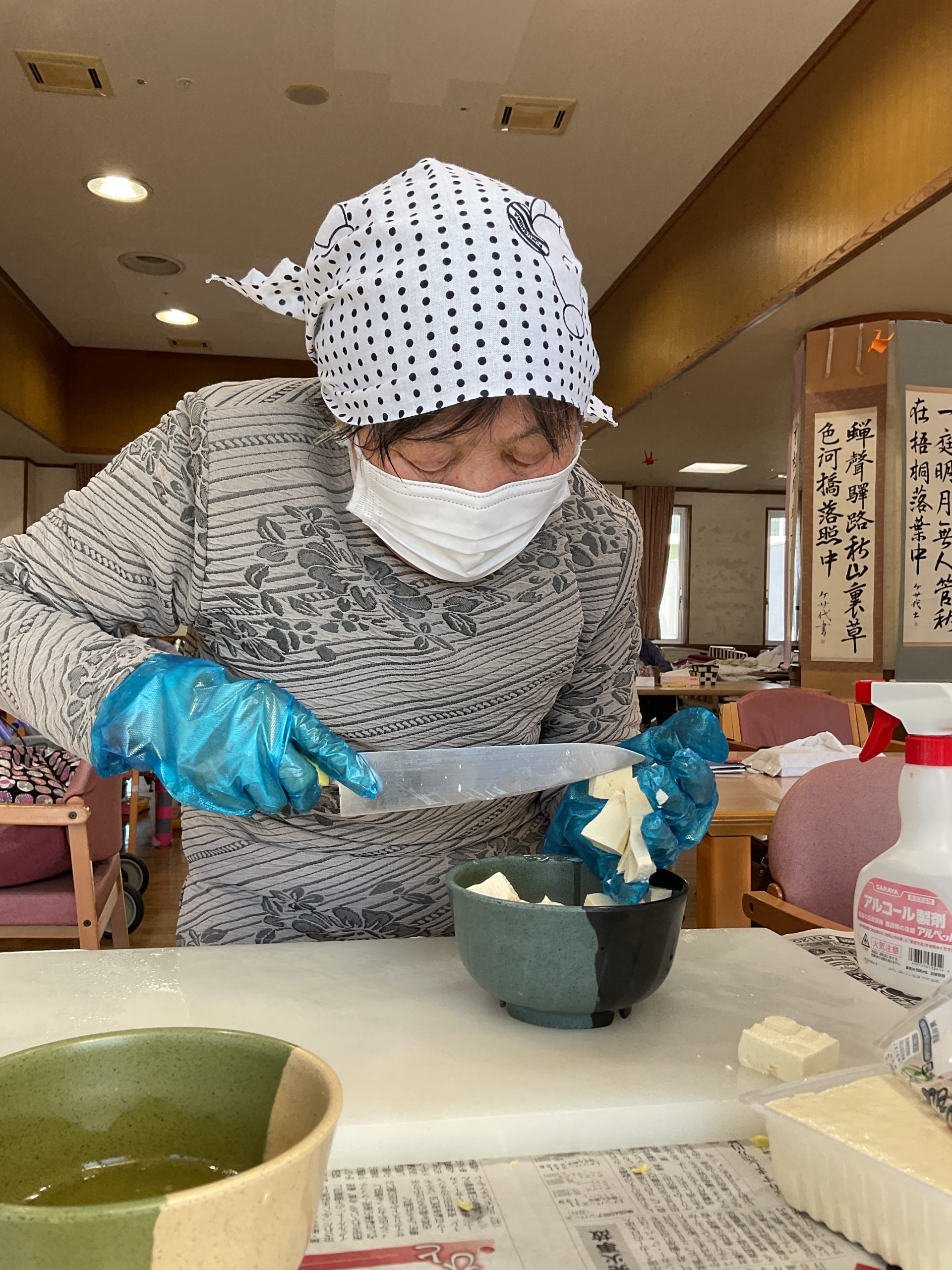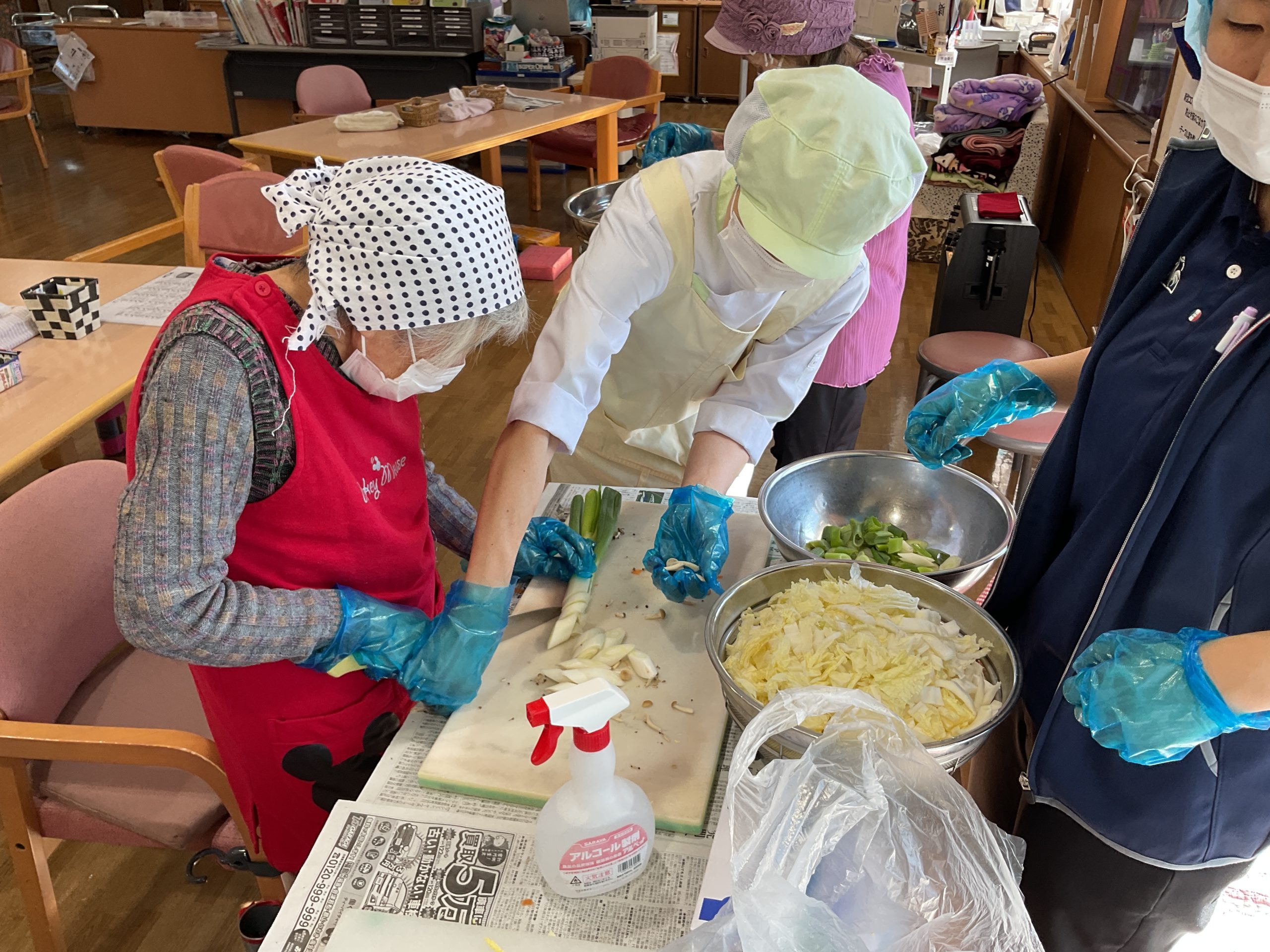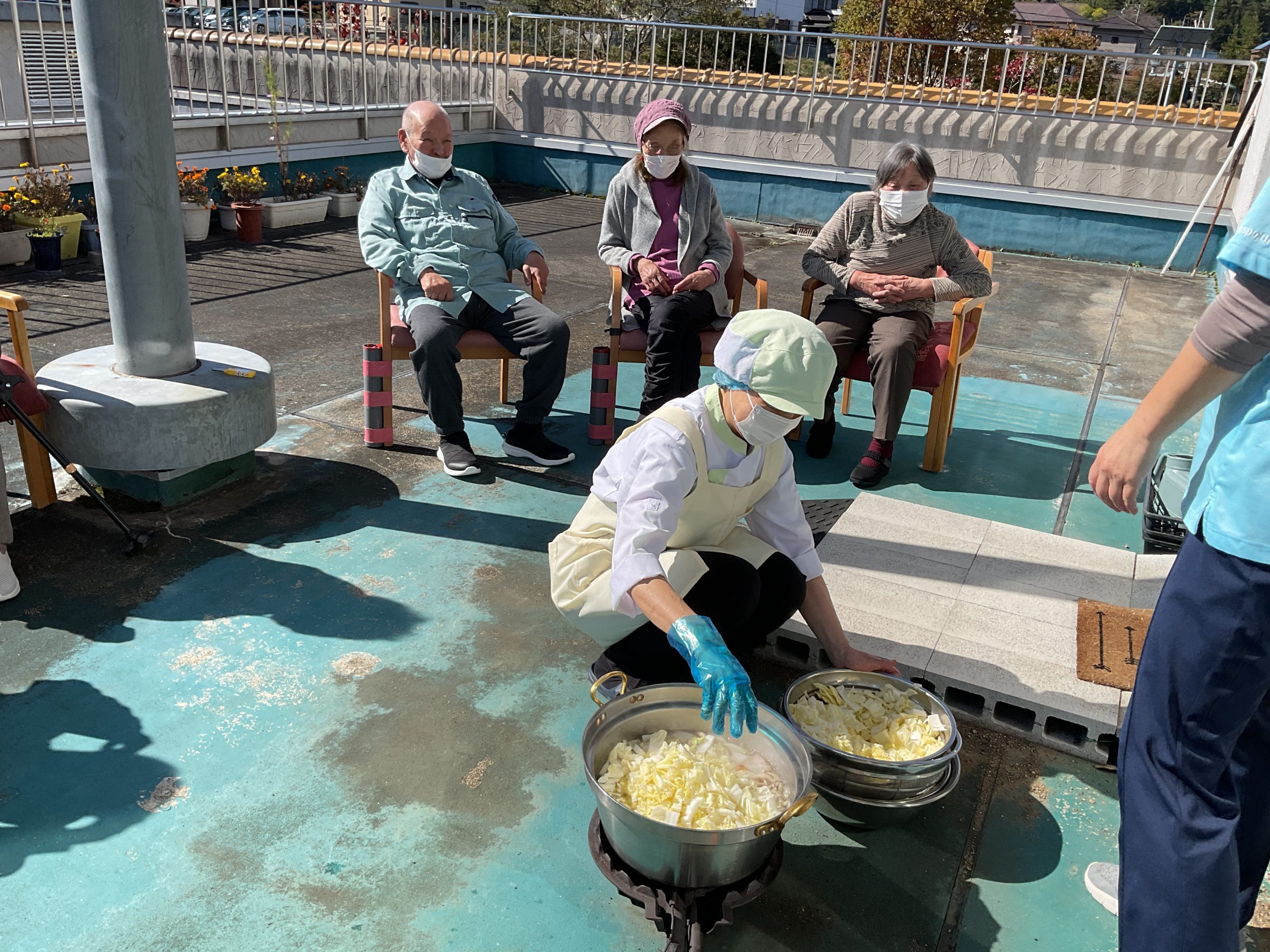 10月24日に芋煮会を行いました。ご利用者にも野菜切りのお手伝いをしていただき、慣れた手つきで準備が進みました。