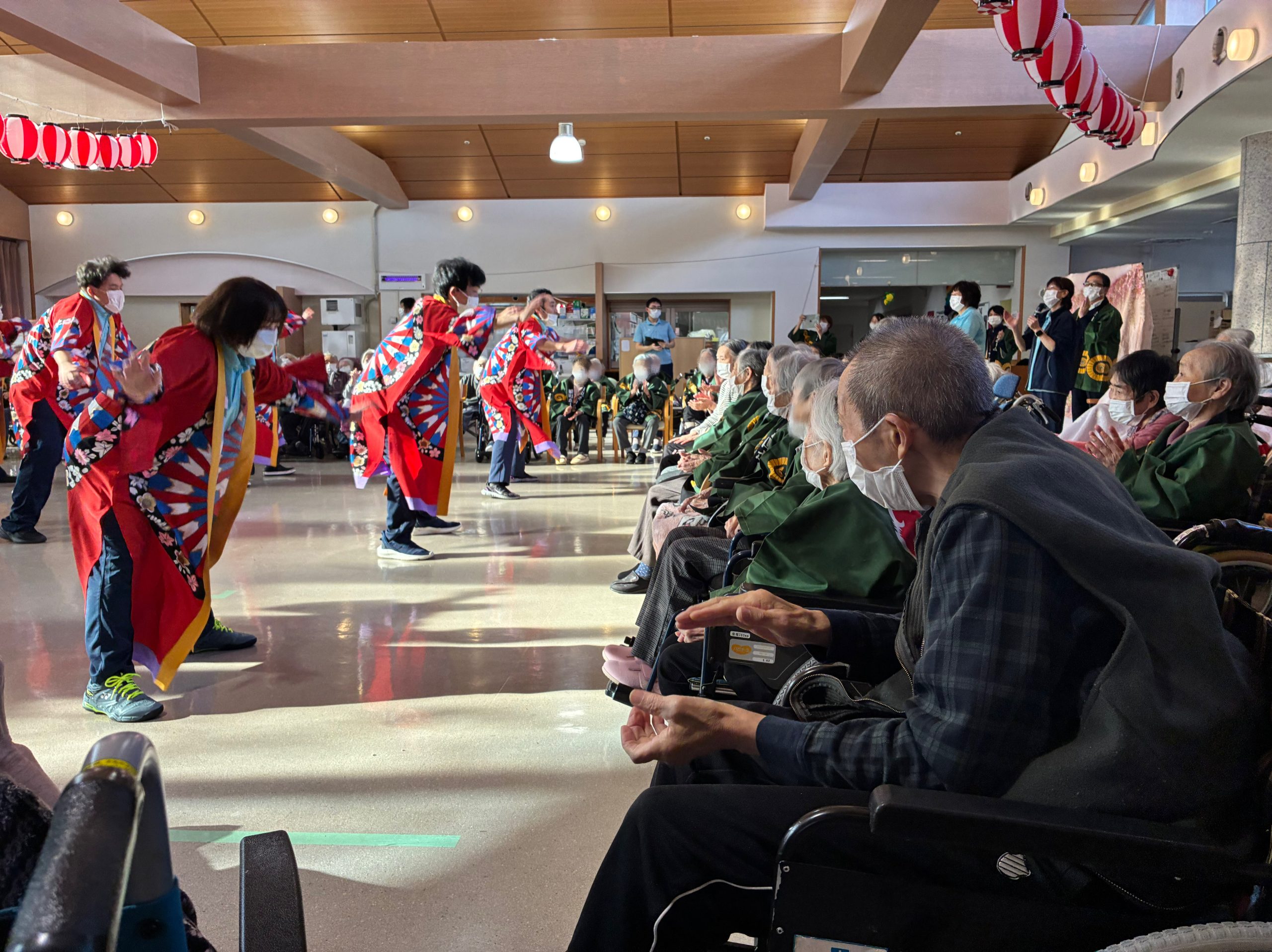 秋祭り 2025/11/07 梁川ホームで秋祭りを行いました! まずは職員による「南中ソーラン」を披露しました。 手拍子をしたり、一緒に踊ってくださる利用者様もおり、大盛り上がりでした^ ^ 終了後は、おやつに焼き芋をいただきました^ ^ 1年に1回の石焼き芋ということで、みなさん笑顔で召し上がっていました。 賑やかで笑顔あふれるひとときとなり、秋の思い出がまたひとつ増えました。 « 前のページ 次のページ »