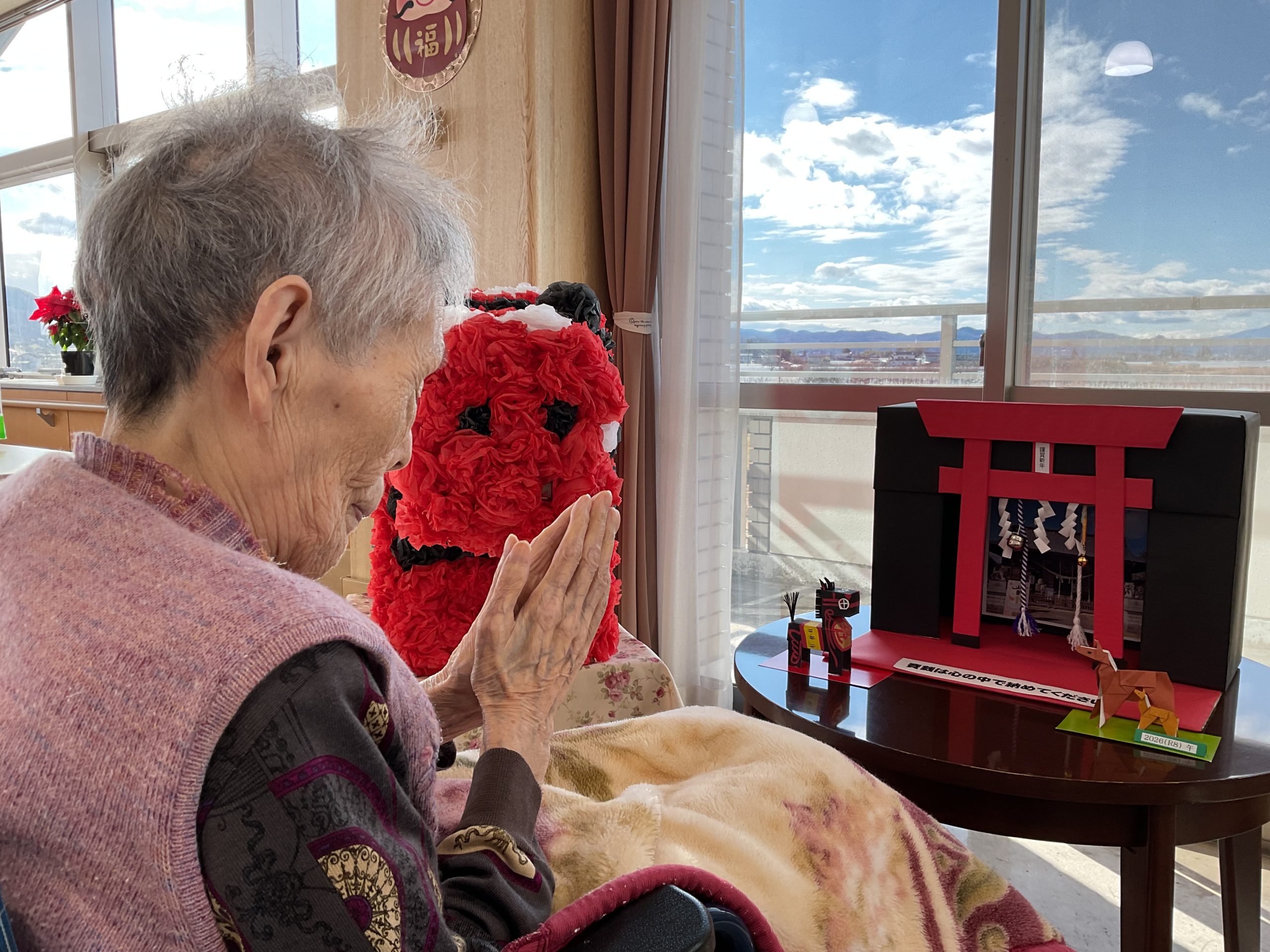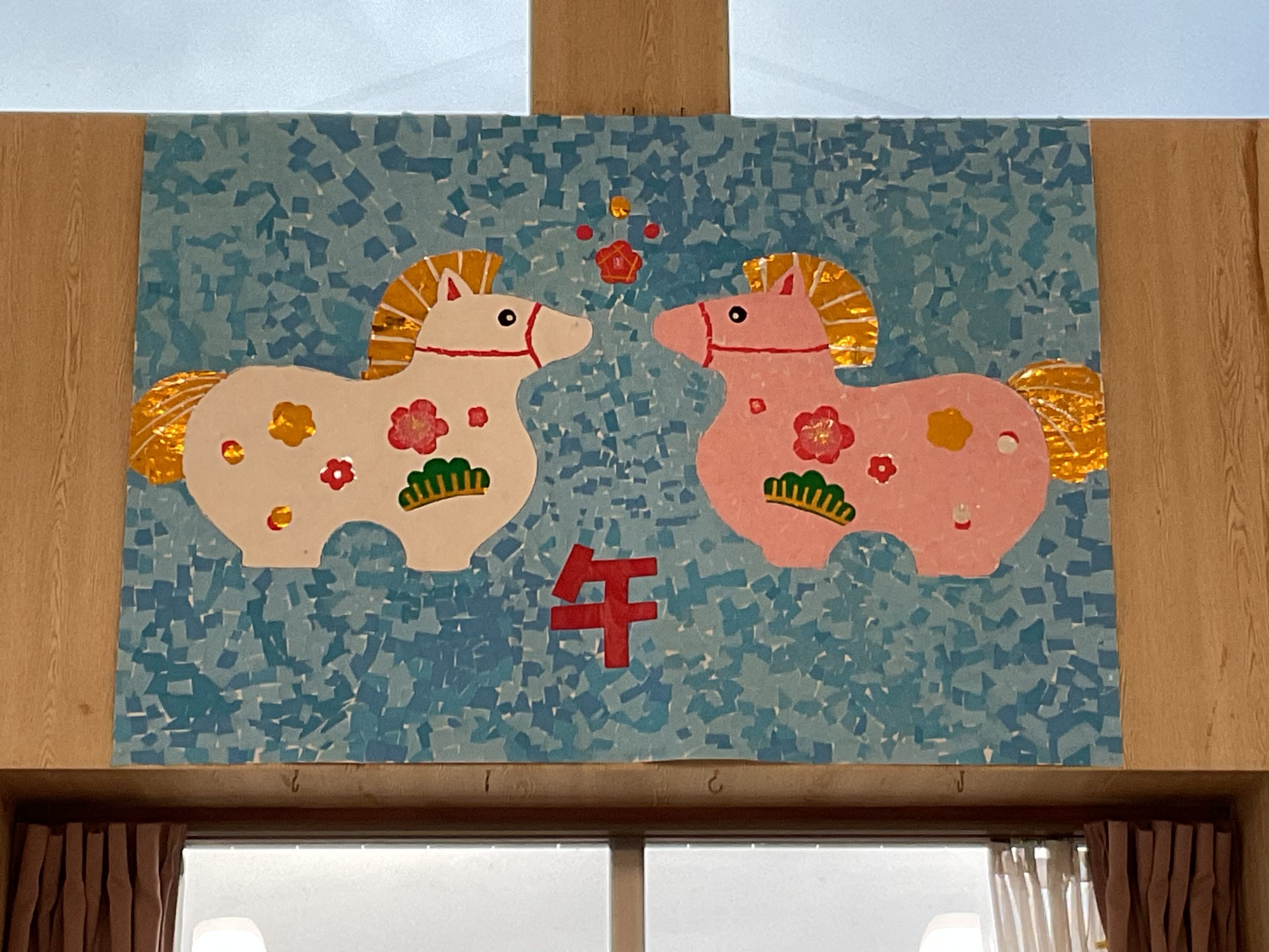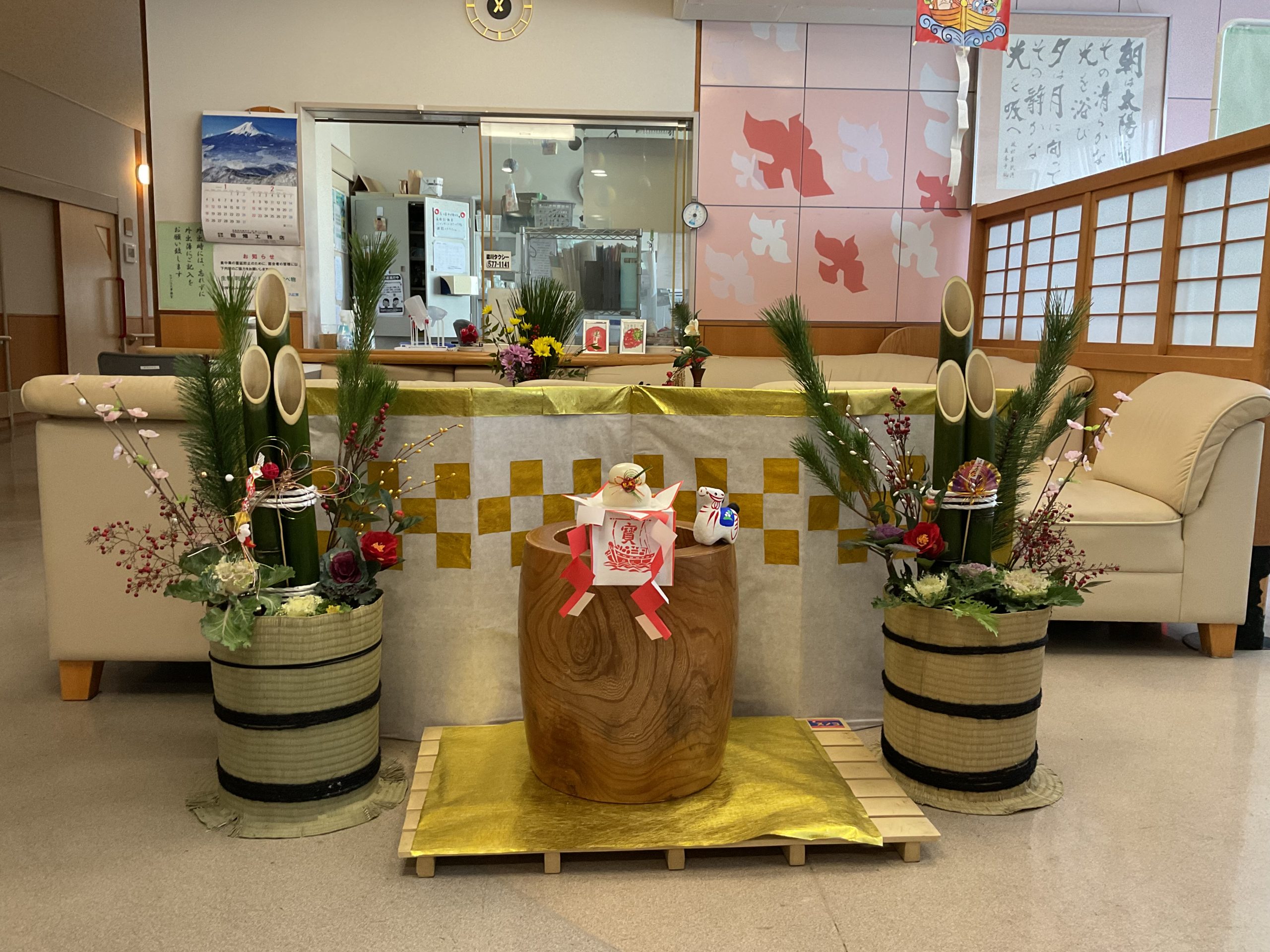 あけましておめでとうございます 2026/01/02 雪もなく、穏やかな新年を迎えました。 今年は「午年」。恒例の貼り絵を皆さんで作製しました。 正月飾りにも力を入れ、豪華な門松が出来上がりました! 今年もたくさん笑って、健康第一でウマいものを食べて元気に 過ごしましょう!今年もよろしくお願いいたします。 1月1日の「おせち料理」です。毎年、美味しいおせち料理を食べていただいます。普通食と、ソフト食(飲み込む力が弱い方向けのお食事)です。 « 前のページ 次のページ »