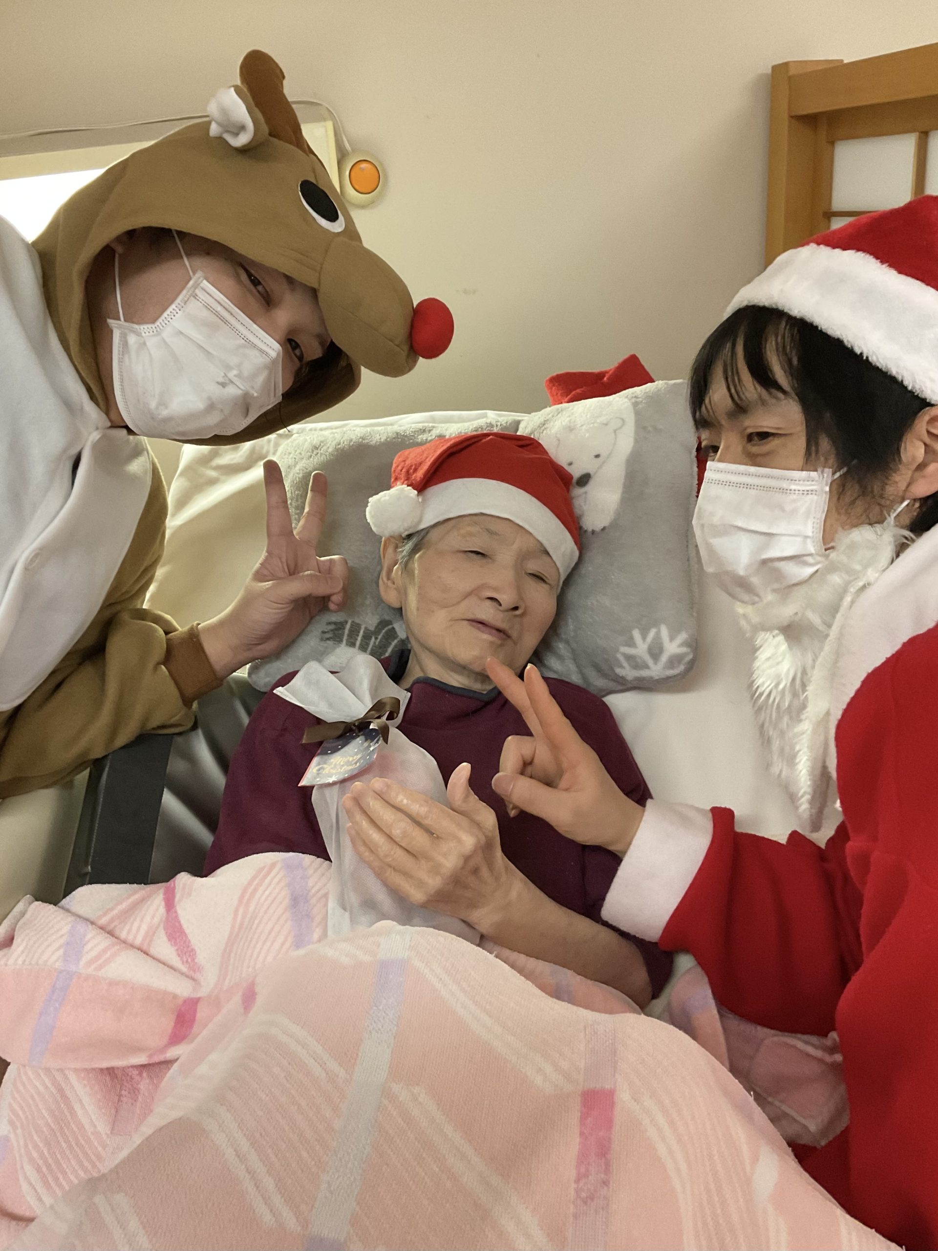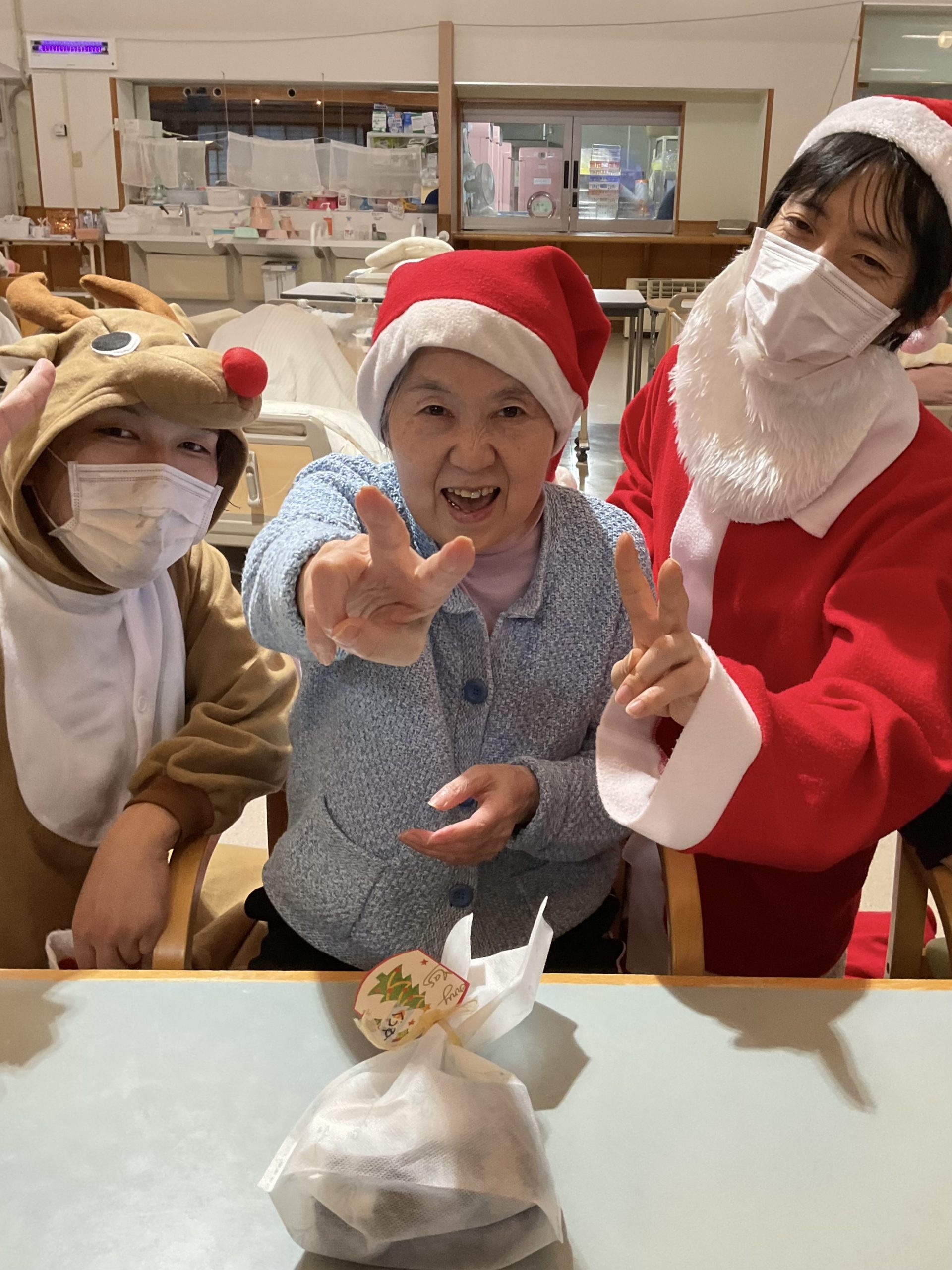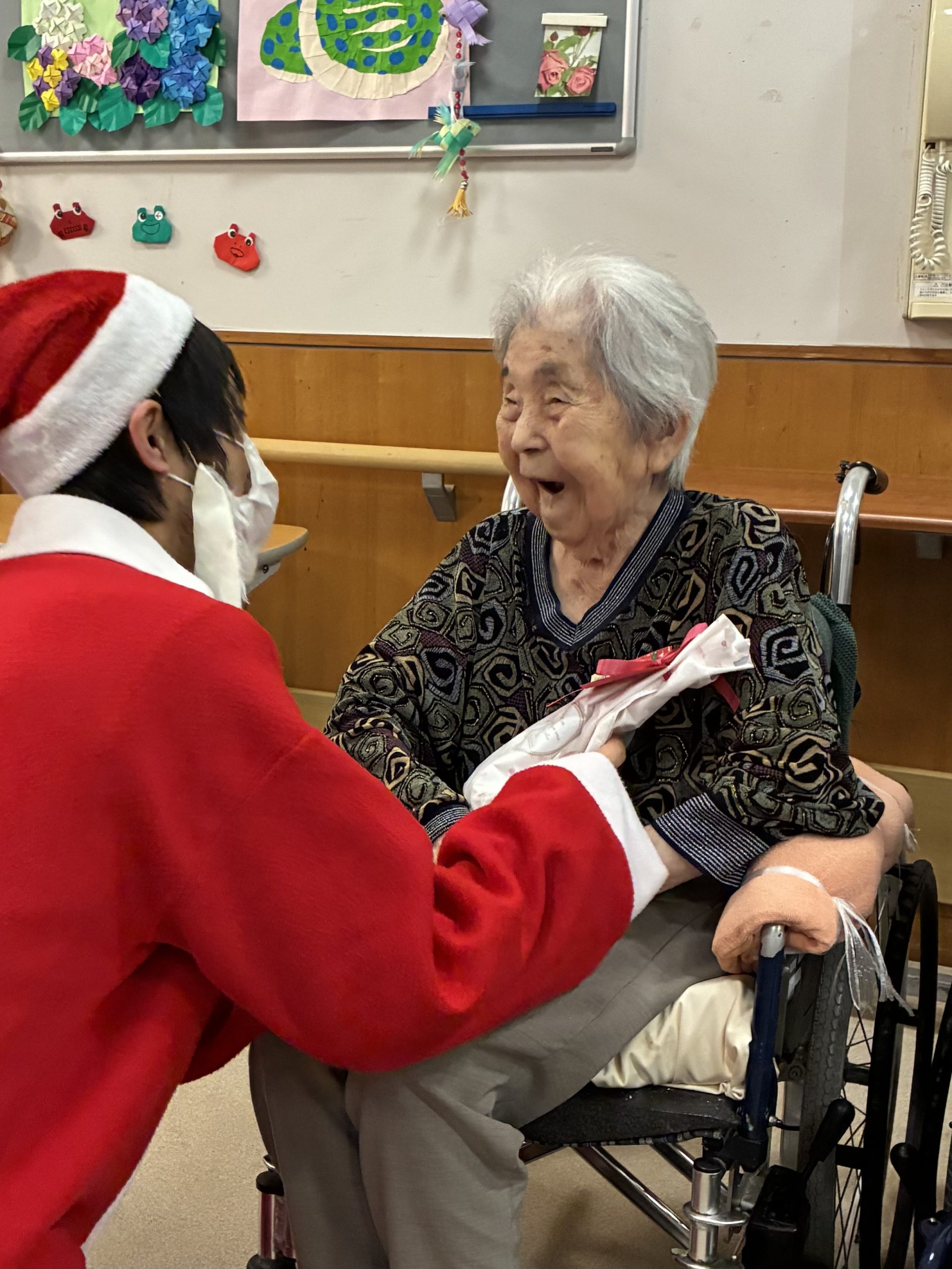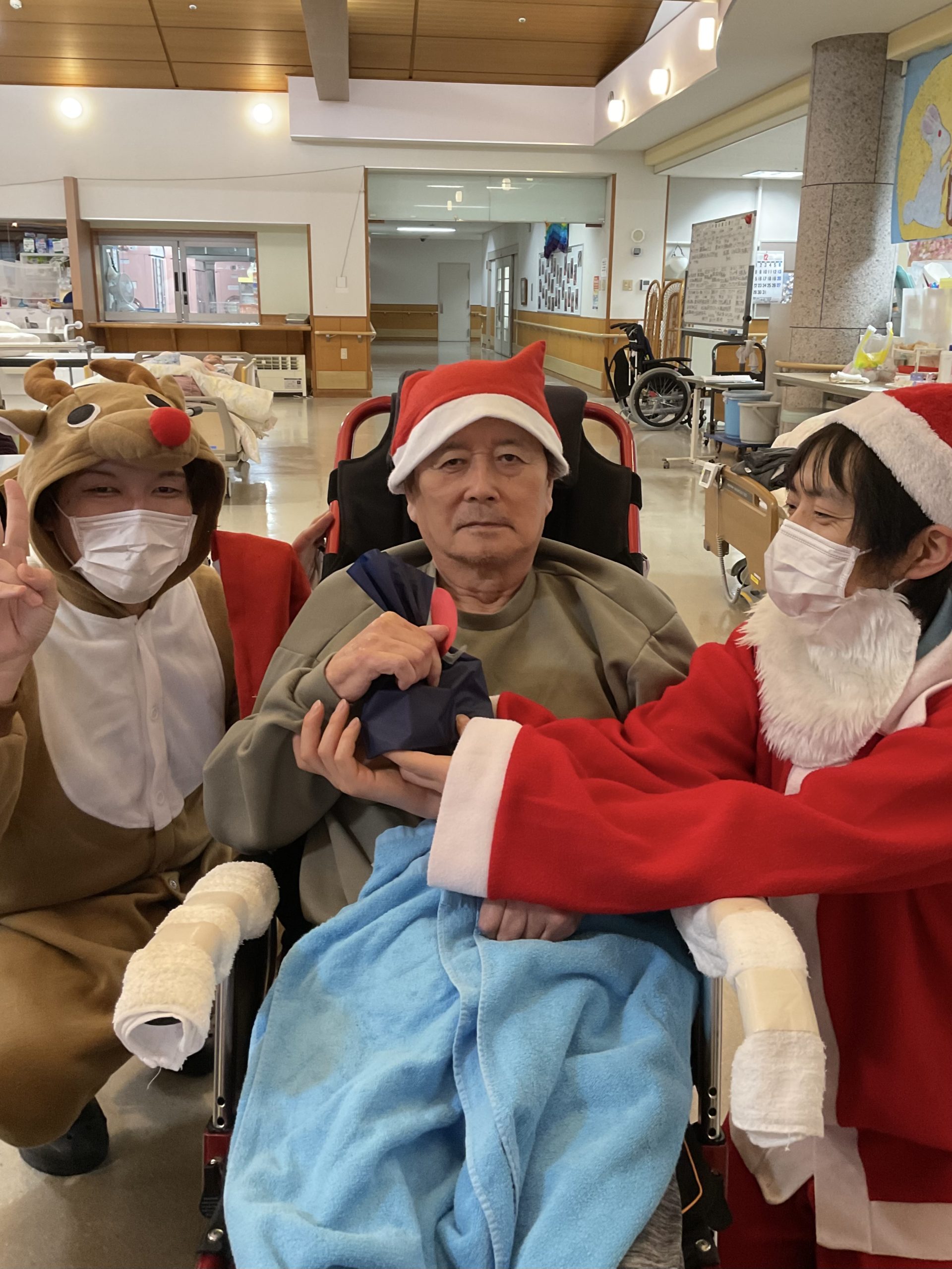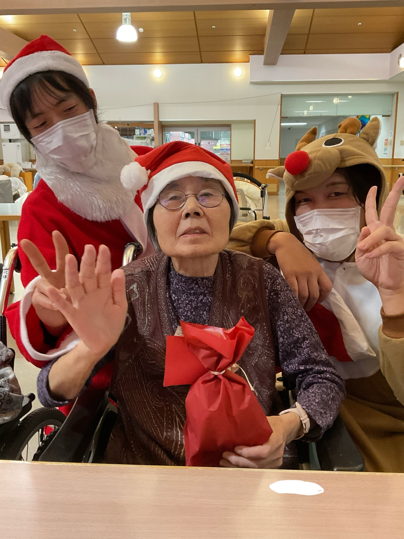 トナカイとサンタクロースに扮した職員が、利用者の皆さまにプレゼントをお渡ししました。サンタの登場に、驚きや笑顔が溢れていました^ ^
