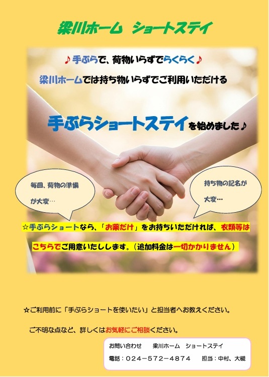 もっと手軽に♪ もっと快適に♪ 梁川ホーム 手ぶらショートステイ♪
