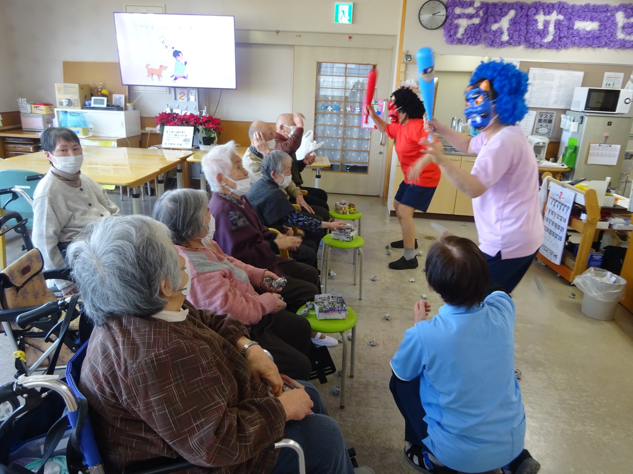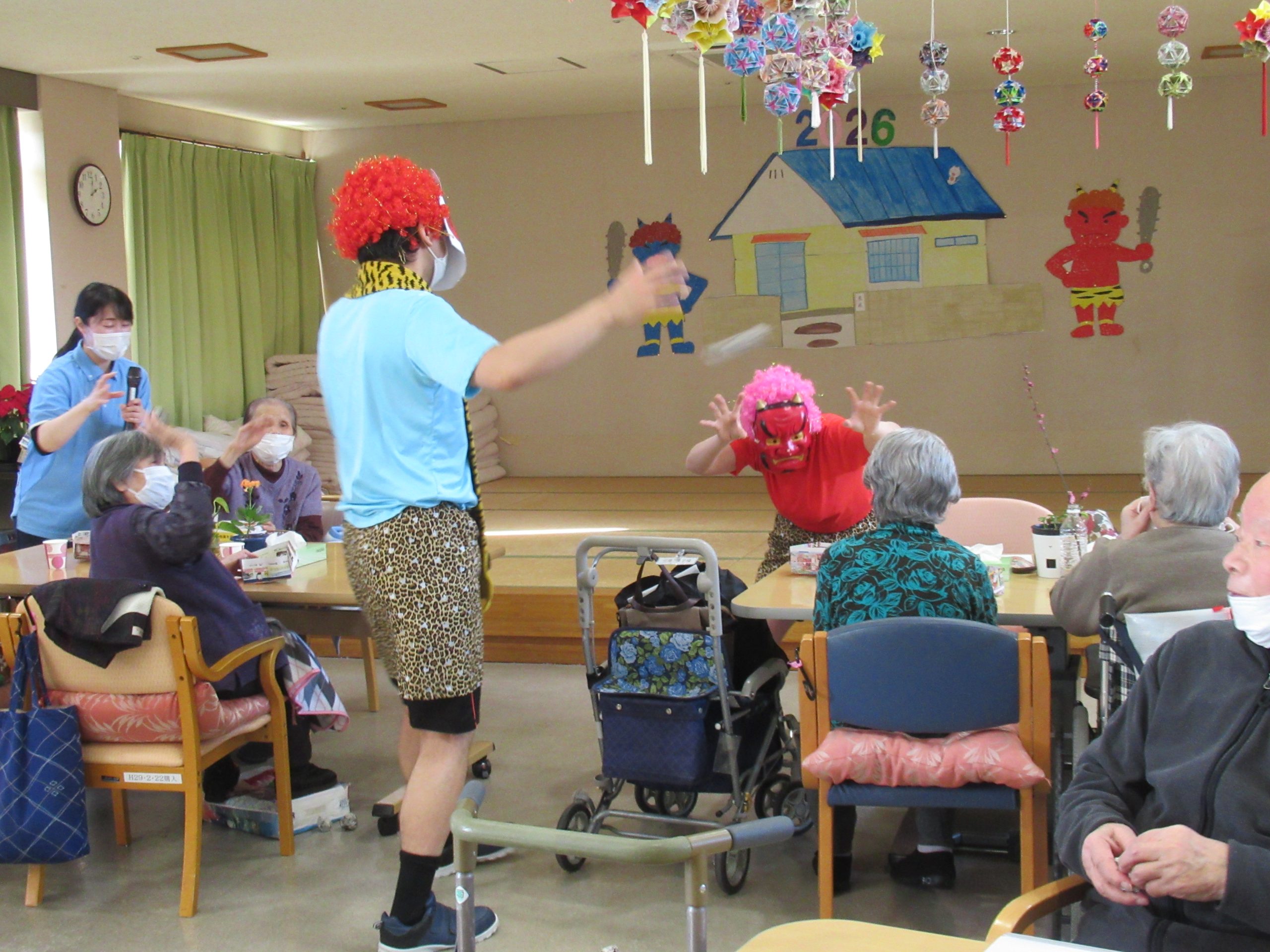 デイサービス 豆まき 2026/02/13 節分に豆まきをしました。今年は、赤鬼と青鬼の2匹が現われました。「鬼は外!!」「福は内!!」最後は、鬼と仲良くなりました。たくさんの福が訪れますように・・・ « 前のページ