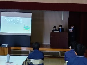 信達福祉会 カエル プロジェクト 2026/02/13 信達福祉会では令和6年度より業務改善プロジェクトに取り組んでいます。 今年は「カエルプロジェクト~代える・変える・帰る~」として取り組みました 各施設のプロジェクトメンバーが課題を抽出、解決に向けて計画を立て、実践に取り組みました。 あつかし荘の発表の様子 梁川ホームの発表の様子 川俣ホームの発表の様子 あつかし荘では、スマートフォンのインカム機能を用いて情報共有をしやすい環境づくりに取り組み、 梁川ホームでは、レクリエーションや体操を通して楽しみを感じていただく取り組み、 川俣ホームでは適切なオムツ交換を学び、漏れによる更衣を減らすことで快適に過ごして頂くと共に介助に係る時間を削減を図る取り組みを行いました。 取り組みの成果をプロジェクトメンバーから発表しました 他施設職員から取り組みについての質問や意見交換を図りました。 継続して行うことも大切であることを共通認識とし、実施したからこそ出た新たな課題について、引き続き改善に取り組んでまいります。 « 前のページ