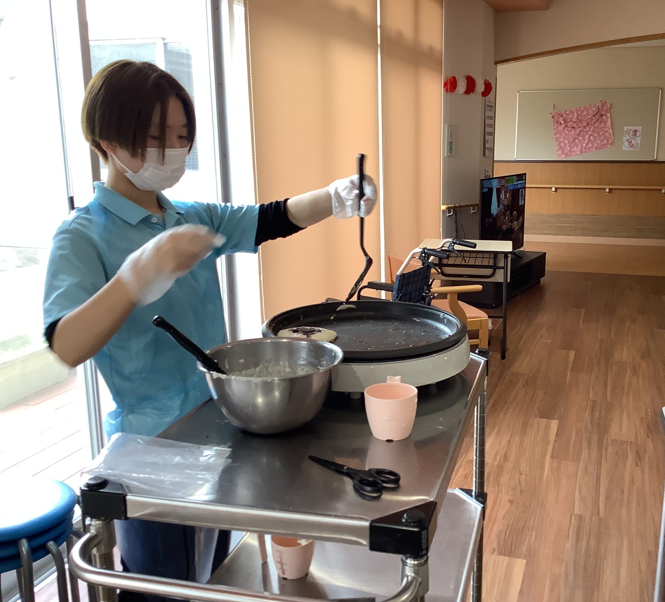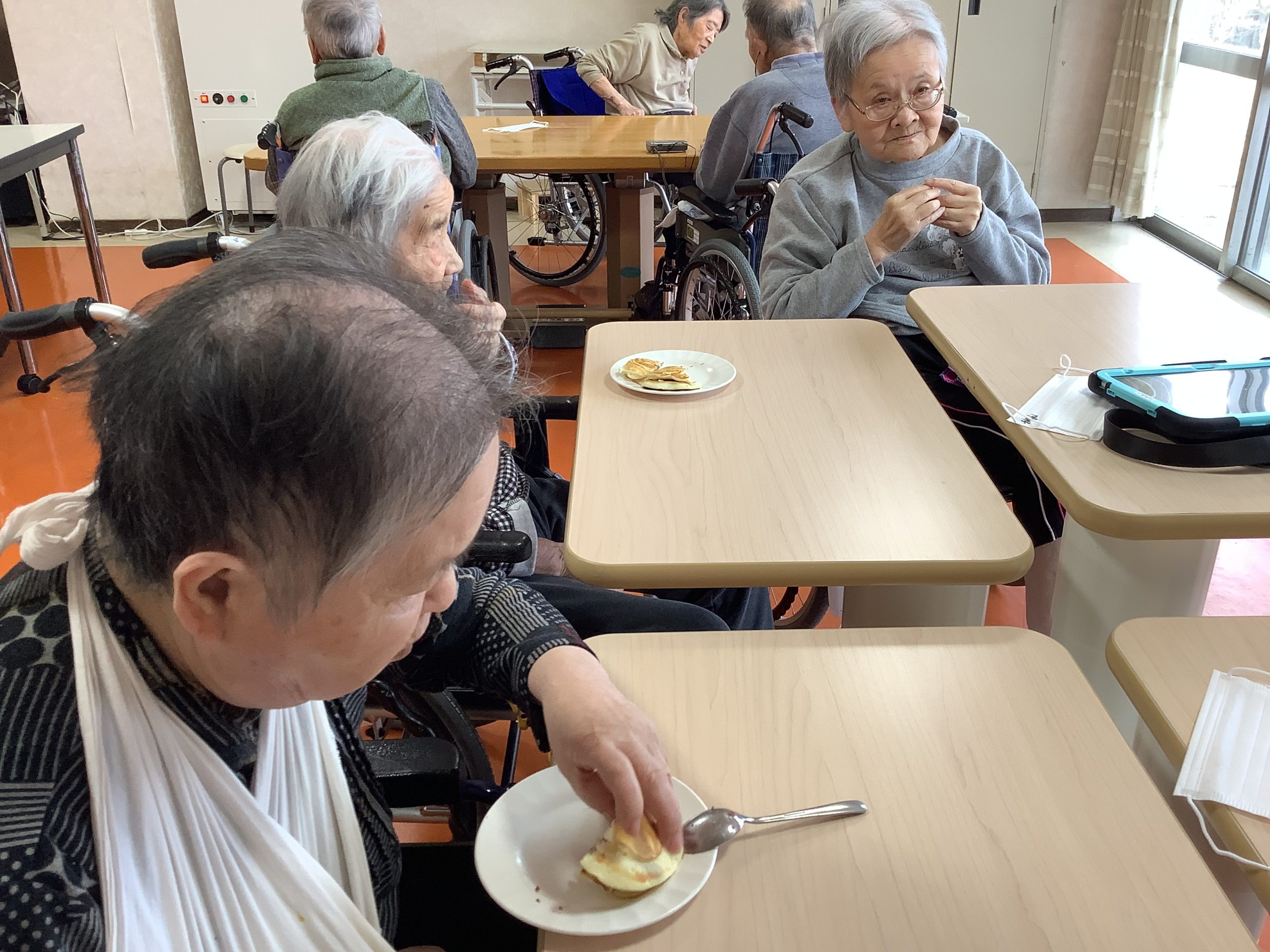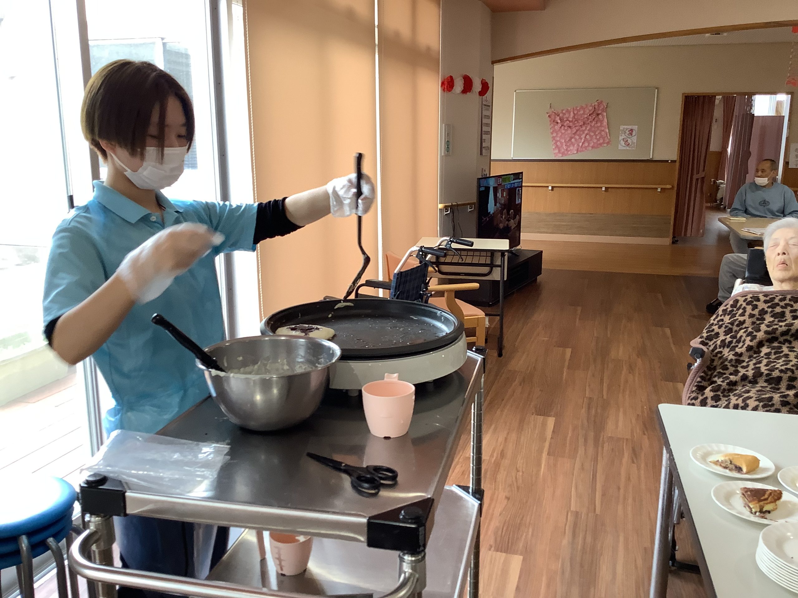 どらやき作り 2026/03/18 3月18日(水) 午後、あつかし荘は甘い匂いにつつまれました。 それぞれのフロアーで、利用者の皆様の見守りのなかで、どら焼き作りに挑戦。 おいしくできたかしら? 出来栄えににっこり。 「甘くて、おいしいね。」 « 前のページ
