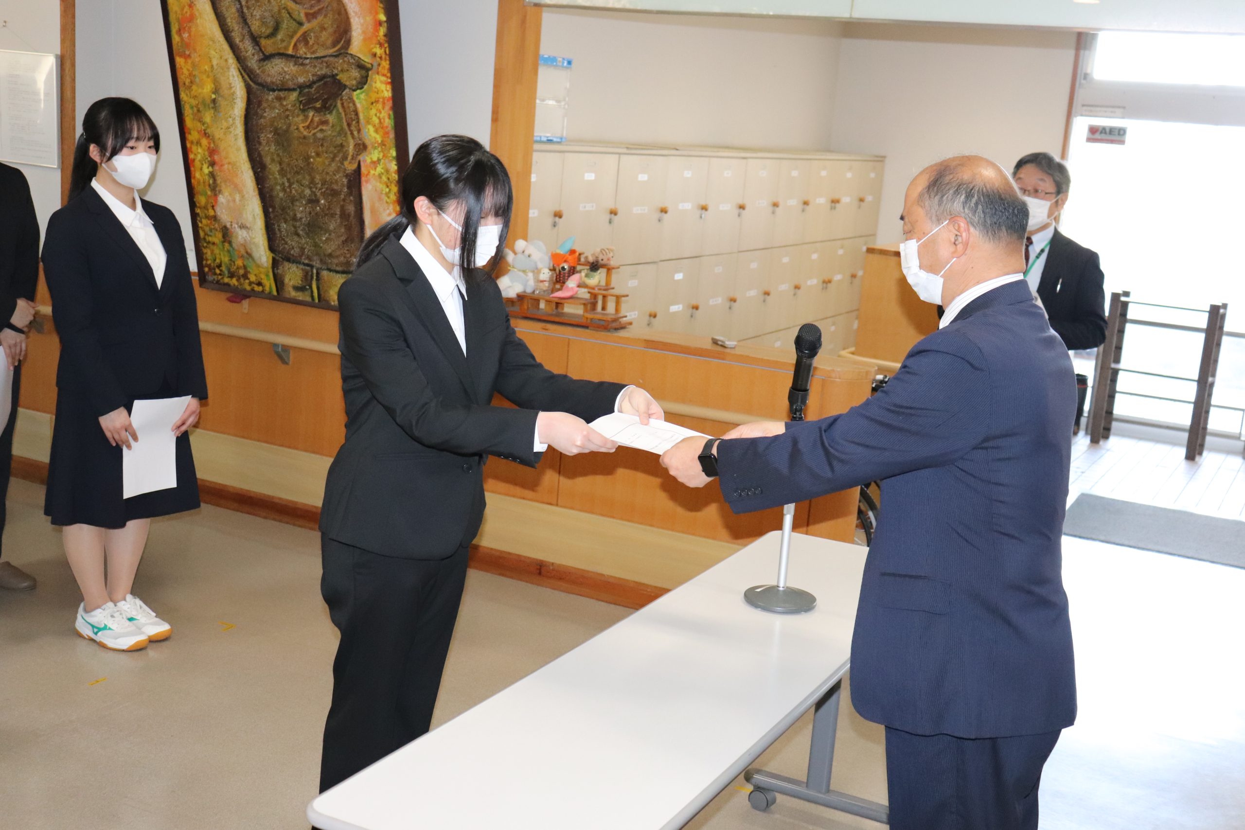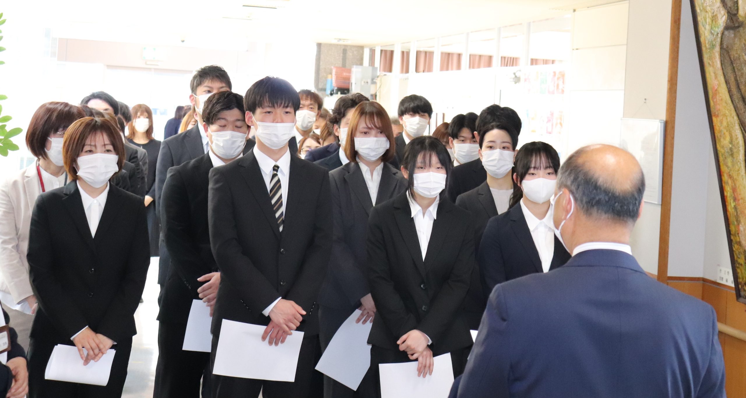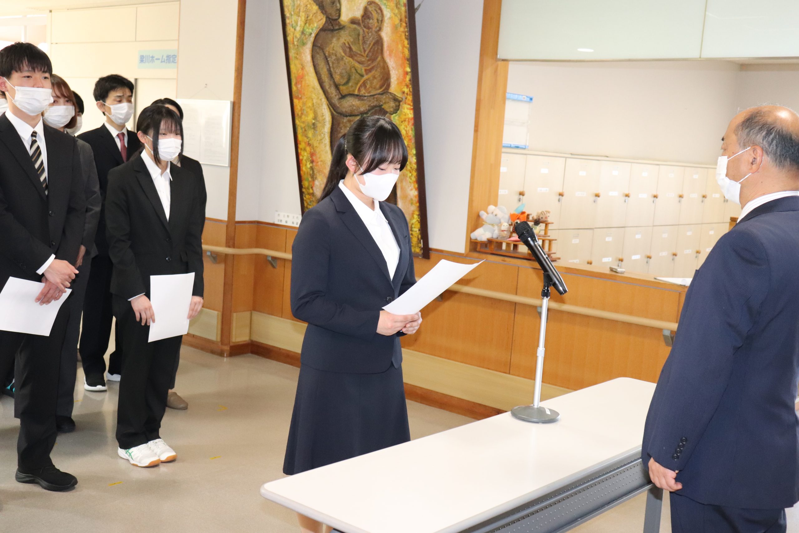 新入職員からは、「誠実に職務を遂行する」旨の力強い宣誓があり、社会人としての第一歩を踏み出しました。