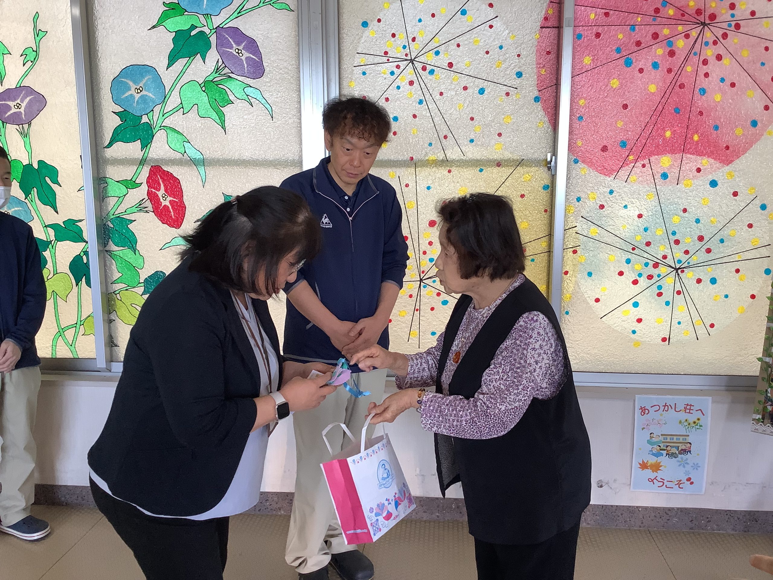 JA国見 さくらの会様より匂い袋をいただきました。 2026/04/17 4月17日(金) JA国見さくらの会の太田栄子様、JA国見支店長飯沼千尋様、JA国見支店井上淳子様がみえられ、匂い袋の寄贈が行われました。 におい袋はさくらの会様の手作りで、なかにハーブを入れてくださっているとのことで、ラベンダーの香りがふんわりとしていました。 ありがとうございました。 « 前のページ 次のページ »