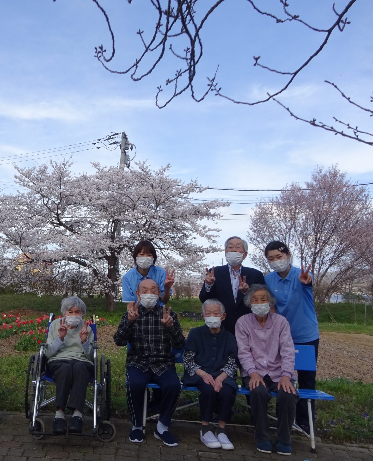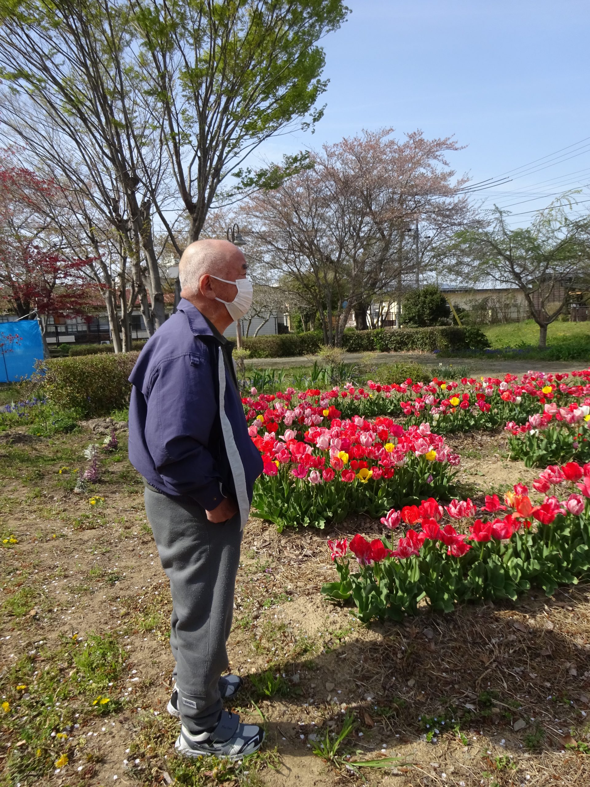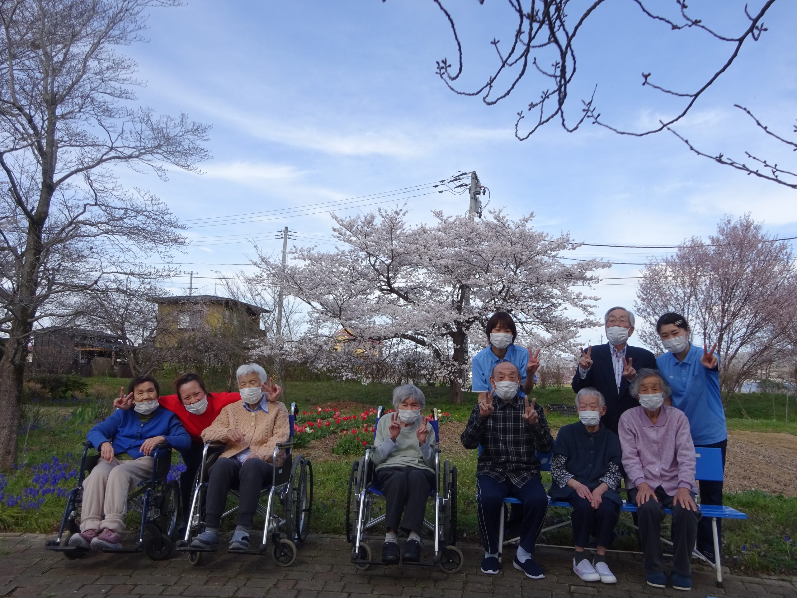 デイサービス 外気浴を楽しんでます 2026/04/17 先日、お花見をしました。満開に咲いた桜を見上げながら心地良い時間を過ごしました。綺麗な桜を見るだけで、自然と笑顔になりました。近くにはチューリップも咲いており「綺麗だなぁ~」と嬉しそうに眺めていました。皆様にチューリップをプレゼントしました。 « 前のページ