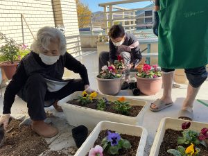 - ベランダ 「居室からは霊山の山々が眺望でき、居室ごとに見える風景は個々に楽しむことができます。」