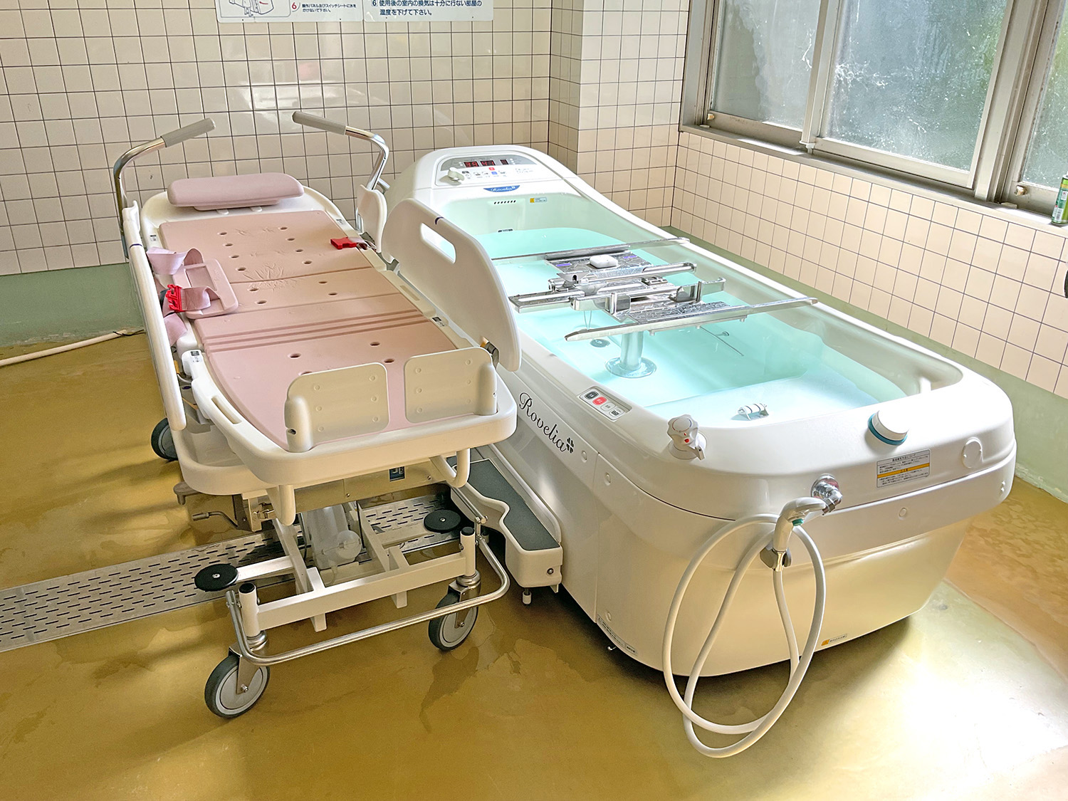 - お身体が不自由な方でも安心・安全に入浴を楽しんでいただける特殊浴槽です。ゆったりとした入浴スペースや、気泡浴で心地よい入浴を提供します。